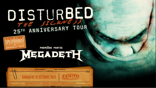 Leurs venues parisiennes sont suffisamment rares pour que nous ne rations pas le concert de Disturbed qui, en ce 12 octobre 2025, vient célébrer le quart de siècle de son premier album, l’incontournable The sickness. Quand, en plus, l’affiche annonce en guise de première partie Megadeth, tout est réuni pour une petite virée parisienne.