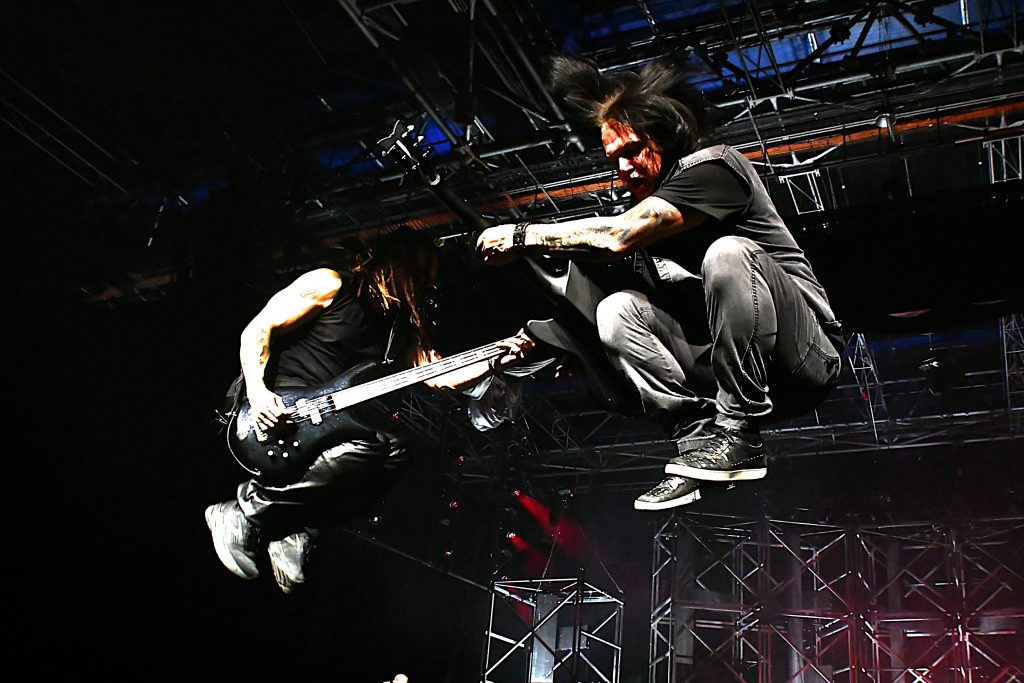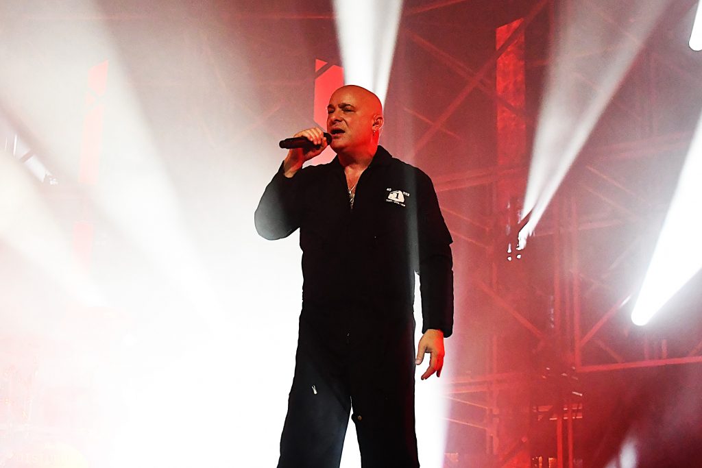 La seconde partie du concert se concentre quant à elle sur les « greatest hits » du groupe. Ce sont ainsi pas moins de huit titres qui sont proposés pour compléter ce concert, titres que le public connait parfaitement. Il est à fond sur I will not break, les poings levés sur Ten thousand fists et Bad man qui voit la mascotte de Disturbed se gonfler derrière la batterie. Seul la reprise de Land of confusion (Genesis) me semble quelque peu… confuse. Indestructible est prétexte à un joli pogo avant un retour au calme le temps d’installer un piano, que chacun s’empare d’une guitare acoustique, mise en place annonciatrice de l’incontournable The sounds of silence (Simon and Garfunkel) sobre et puissant, morceau acclamé comme il se doit par le public.