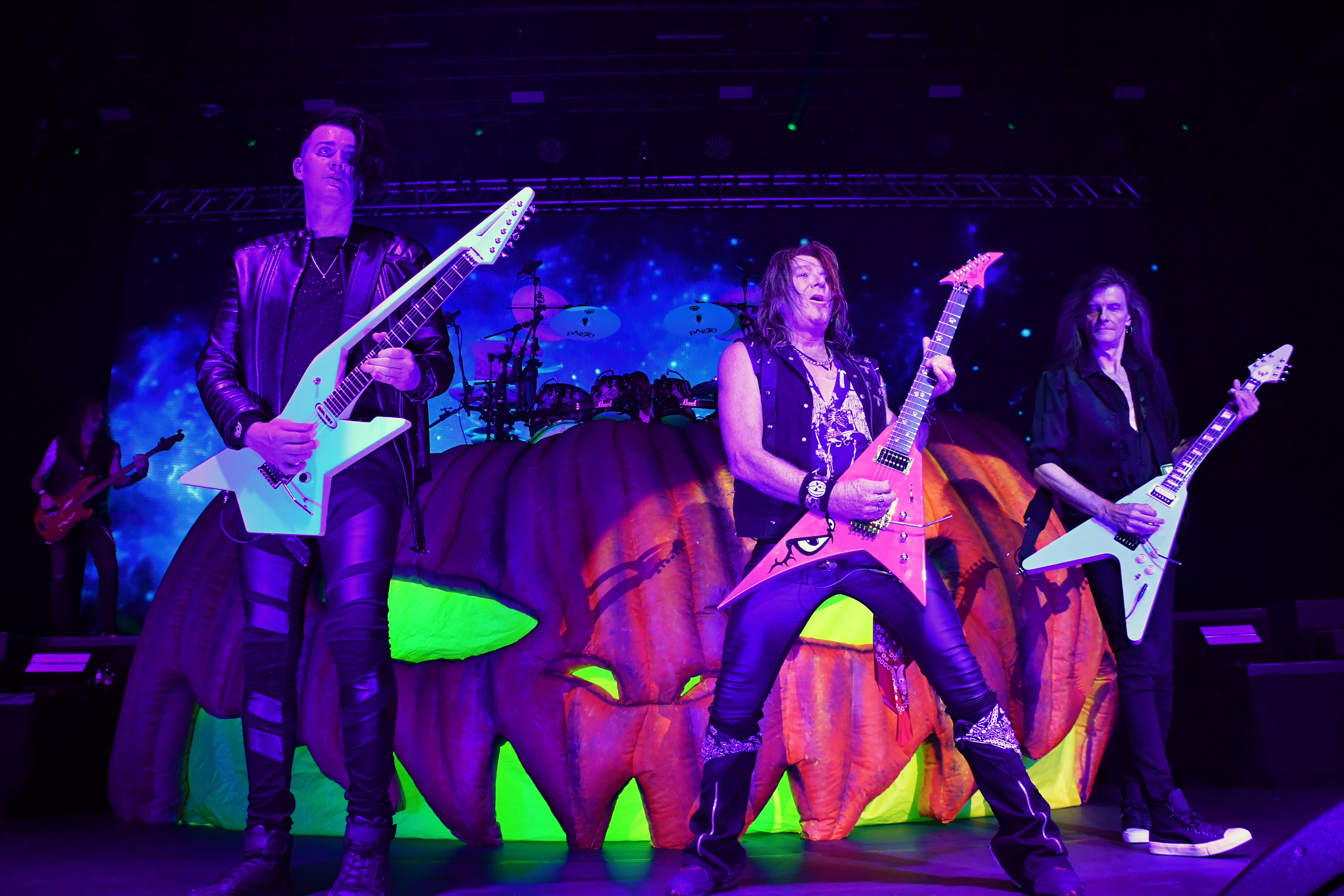 Avec DragonForce, on sait qu’on va avoir droit à un show aussi visuel que technique et quelque peu « frime ». Ceux qui ont assisté à la dernière tournée du groupe retrouvent, en version XXL, un décor de jeux vidéo avec des consoles qui servent de promontoires géants et, naturellement, un dragon en fond de scène. Annoncée en remplacement, la bassiste Alicia Vigil est toujours présente et la complicité avec les autres musiciens, Herman Li et Sam Totman en tête, est réelle. Une place permanente pour elle ? Le groupe est enjoué, alternant entre alignement de notes et tempi plus calmes, toujours avec bonne humeur. La promesse d’un bon moment est tenue.