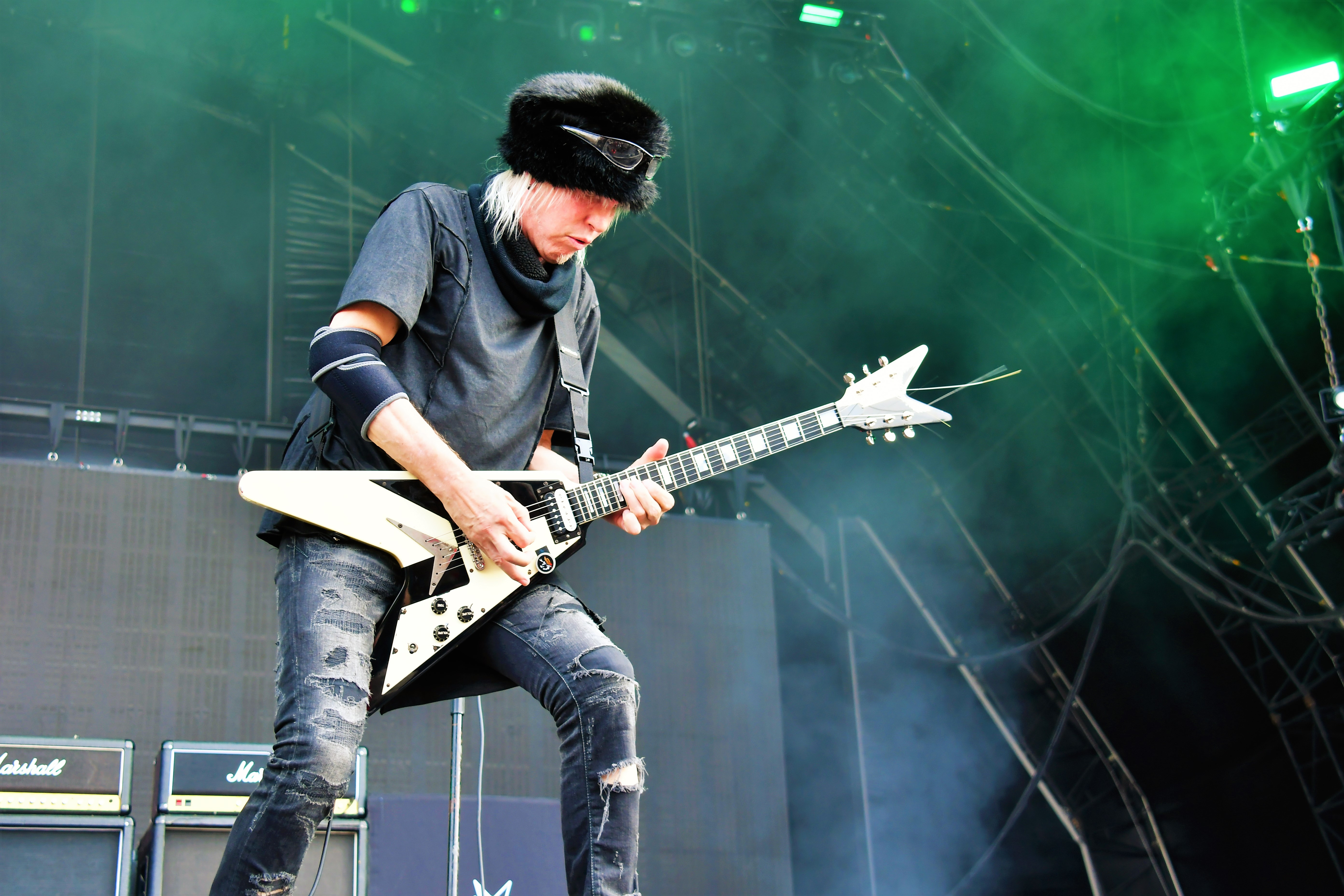 La soirée est allemande puisque la tête d’affiche n’est autre que les fidèles Scorpions qui, à l’origine, devaient clore cette seconde partie du Hellfest. Mais la venue de vous savez qui a aussi poussé Barbaud et son équipe à penser à cette quatrième journée. Meine et sa bande ont accepté de clore cette journée du jeudi et c’est tant mieux. Car même si le chanteur semble parfois en mode diesel – lent à démarrer – le groupe trouve rapidement sa vitesse de croisière. Avec Scorpions, on sait exactement ce qu’on va avoir : un chanteur qui distribue l’équivalent de la forêt amazonienne en baguettes, un break de ballades intemporelles (avec un Wind of Change revisité en hommage à l’Ukraine) et une large place laissée au nouvel album (avec, de mémoire, au moins cinq titres extraits de Rock believer), un show son et lumières rodé et d’une efficacité sans pareille, une guitare qui fume… Oui, les anciens savent exactement quoi faire pour satisfaire leur public et c’est tant mieux, car Scorpions se donne toujours avec autant de bonheur et sait satisfaire son public. Un très beau show qui vient presque conclure cette première journée par un duo avec l’ami Campbell (sur Rock you like a hurricane).