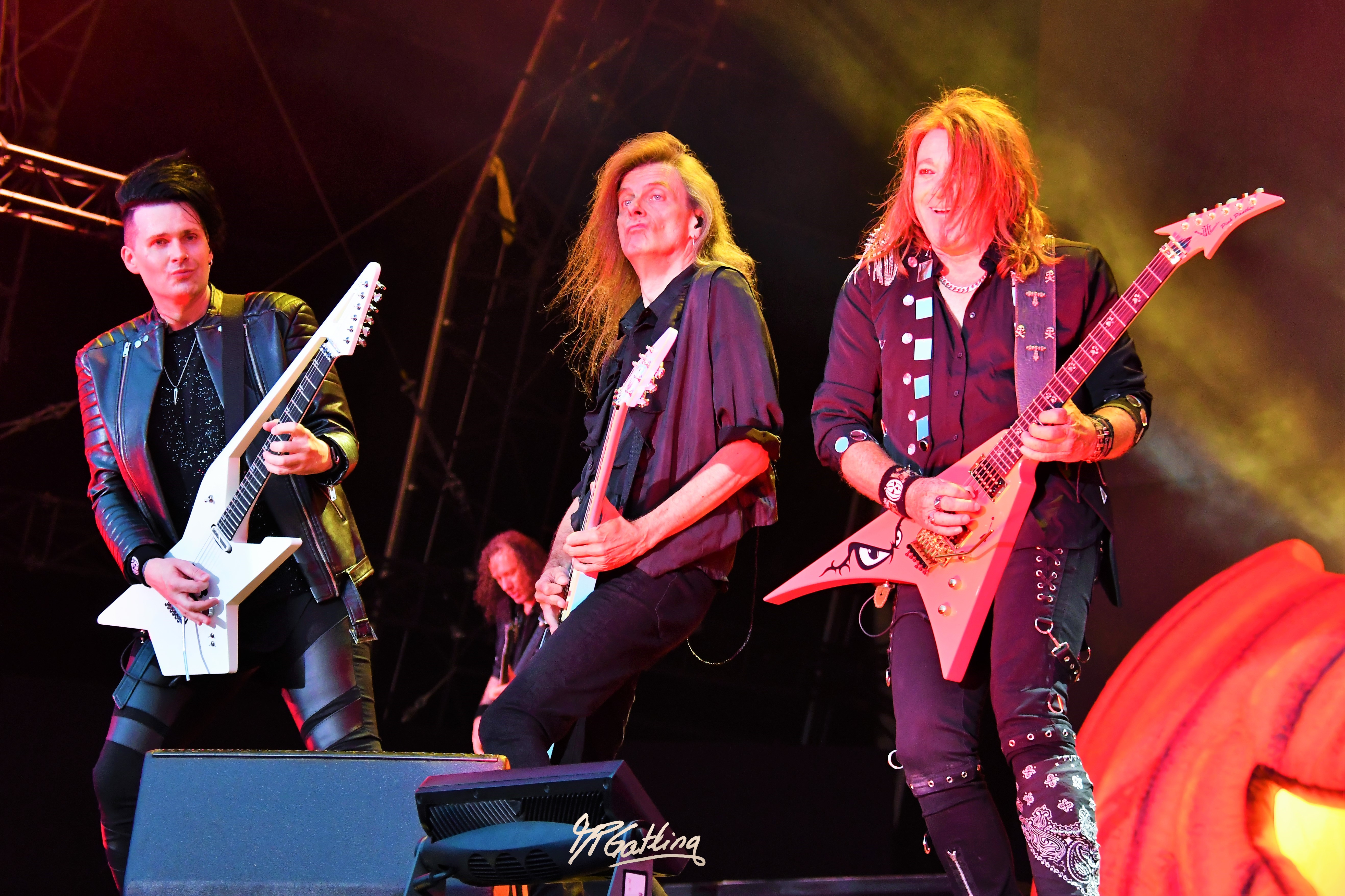 Un gros rideau masque la scène, le public se masse devant pour accueillir, enfin – ça fait depuis 2013 qu’on ne les a pas vus à Clisson – les citrouilles allemandes de Helloween. Même si l’évènement n’est plus aussi attendu qu’il y a trois ans, les Pumkins United telle qu’on les appelle depuis le retour au bercail de Kiske et Hansen, sont là pour marquer de nouveaux points d’autant plus après avoir publié un album aussi bon que leur dernier éponyme. La recette fonctionne ici toujours aussi bien, entre trio de guitares, duos/trios ou presque de chant, le groupe propose une setlist de classiques imparables (Eagle fly free, Dr Stein, Future world, I want out…) et semble uni comme jamais. Une superbe prestation de bout en bout d’un groupe au meilleur de sa forme.