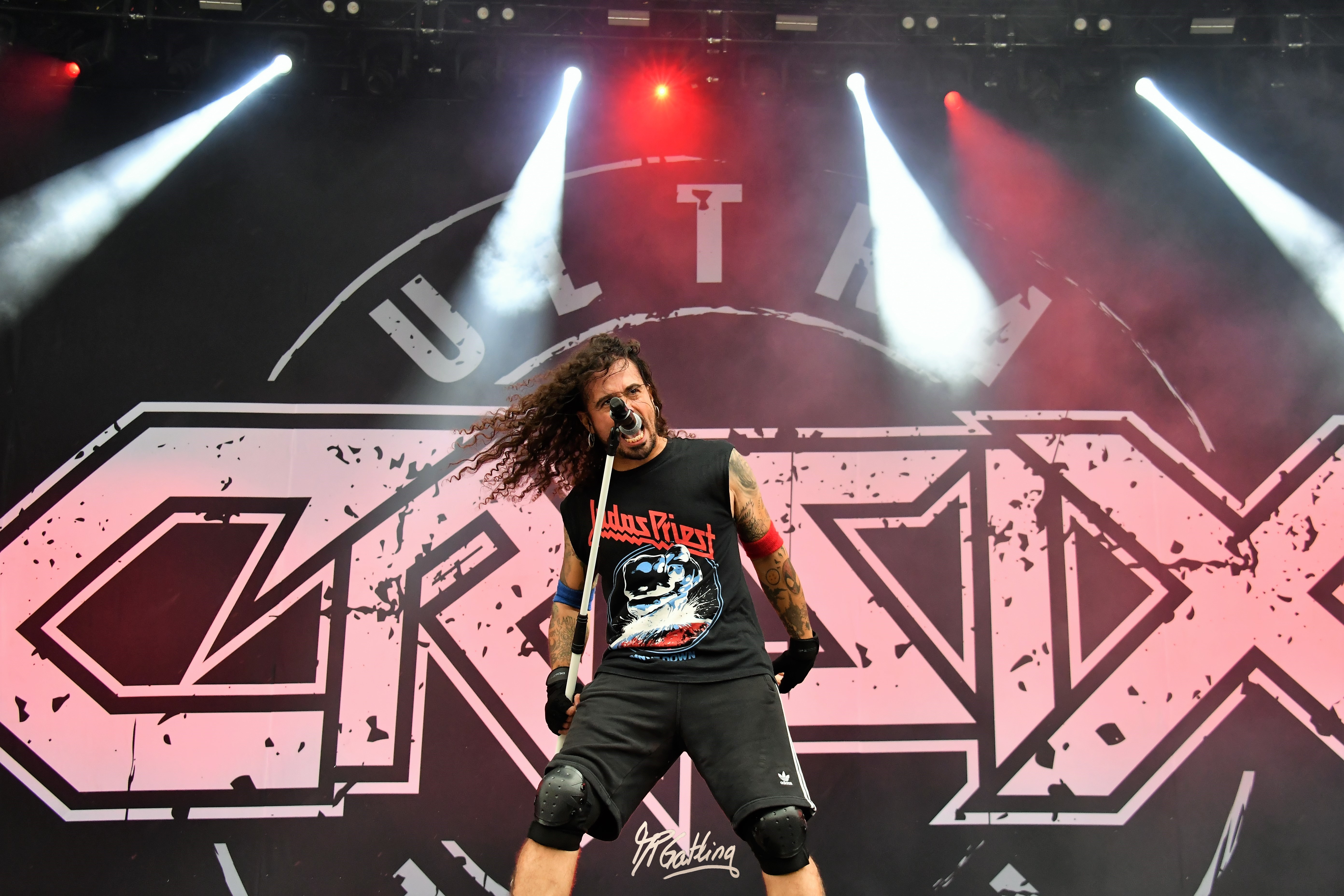 Quelques interviews sont programmées cet après midi, et je rate pas mal de choses sur la MS1. Mais sur la scène voisine, en revanche, il y en a pour tous les goûts et toutes les humeurs. Crisix revient au Hellfest pour la troisième fois (sans compter sa participation à la récente tournée Warm-up). Après Altar en 2017, on retrouve les Espagnols invités l’an dernier pour le HF from home. La fidélité paye et c’est aujourd’hui, même un peu tôt, sur une mainstage qu’on les retrouve. Oui, mais… Le chanteur, Julian, débute le concert par un speech : leur batteur a été testé positif au covid et ne peut donc jouer… « On fait quoi ? on annule ou on demande à des amis un coup de main ? » Solution numéro 2, Job – oui, le même qu’on a déjà vu ce matin – a pris le temps d’apprendre quelques titres et se dirige, acclamé, derrière la batterie. Et Crisix lance les hostilités avec puissance et bonne humeur. Job se retire sous les hourras après deux titres et les thrashers fous reprennent leurs habitudes, permutant les rôles sous forme de quatuor. Sourire, bonne humeur et sérieux sont de mises, le public est mis à contribution dès l’arrivée, derrière les futs, de Paul, batteur habituel de Gama Bomb. La sécurité voit le duo de guitaristes, Albert et BB foncer vers le public et s’y enfoncer. Le duo se fraye un chemin au centre de la fosse qui entame un circle pit rituel et joyeux sous le regard hilare de Julian qui a perdu de vue ses compagnons. Qui, naturellement, reviennent terminer ce concert de folie en fendant la foule avant de remonter sur scène, heureux. Sans doute mon concert préféré de l’ensemble de cette édition. Crisix marque incontestablement encore des points.