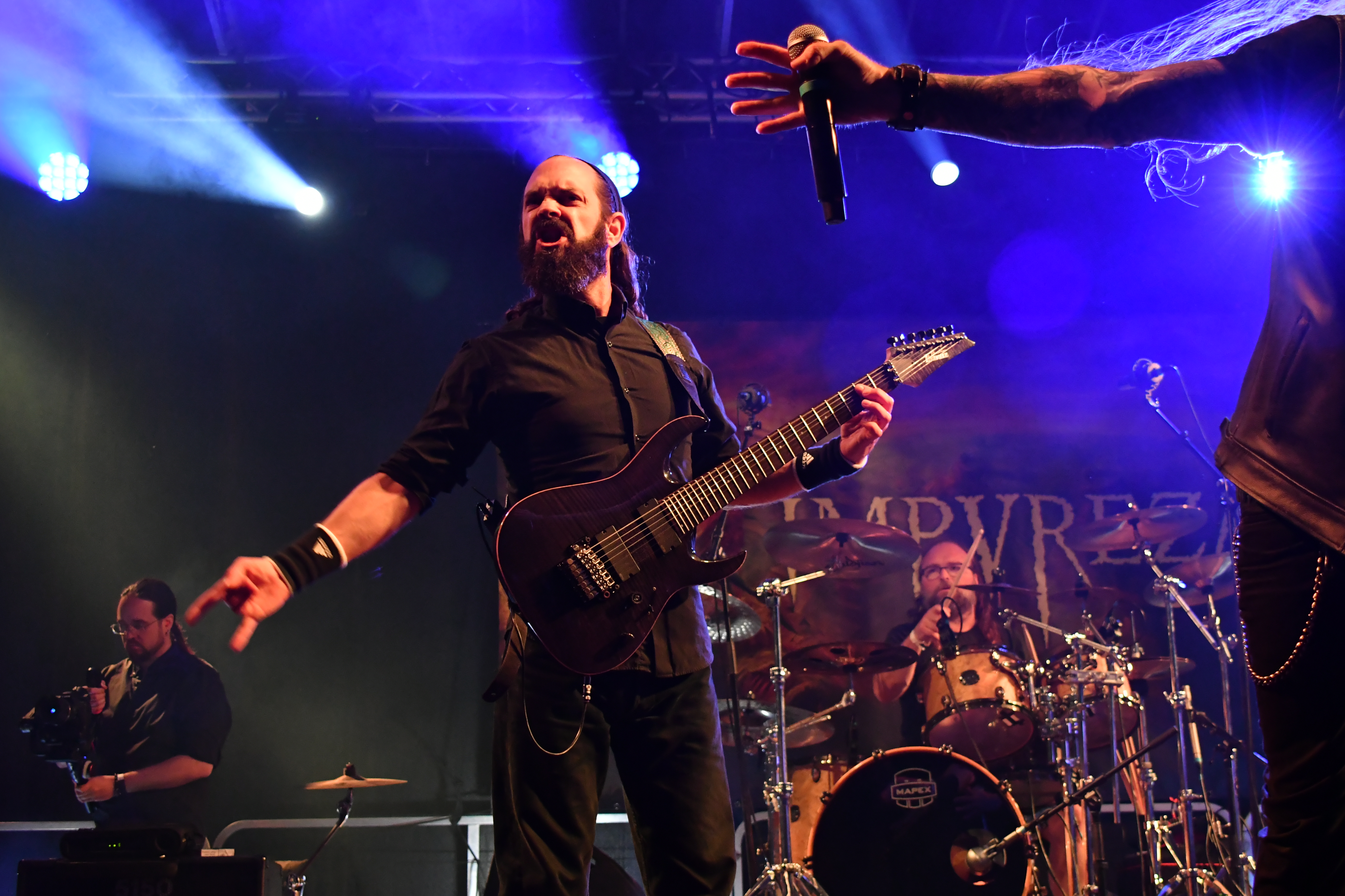 La tête d’affiche, ce sont les locaux d’Impureza. Malemort ayant décallé les heures de passage, c’est bien plus tôt que Impureza monte sur scène après avoir pris le temps d’installer tranquillement son décorum – deux superbes pieds de guitare et basse, ornés de feuilles et de cranes (piqués dans les catacombes?)
