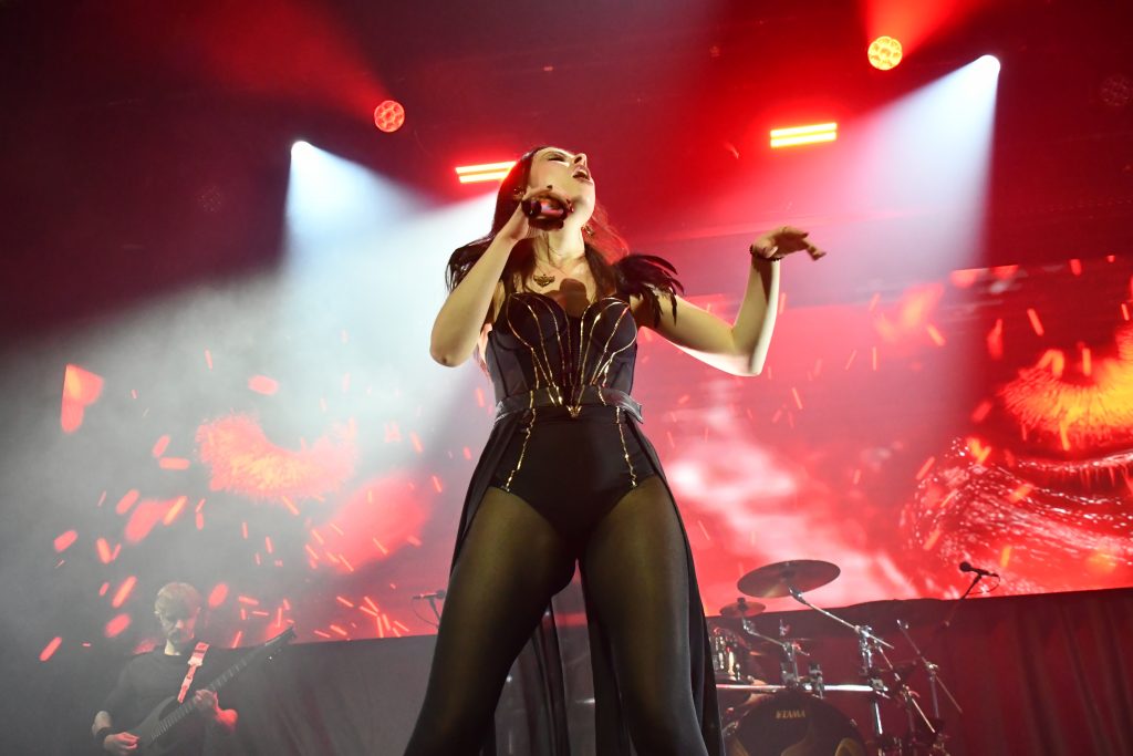 Les Orléanais d’Orpheum Black suivent leur petit bonhomme de chemin. Après une pause salvatrice, le quintette s’est ressourcé et se retrouve en forme. Le look a légèrement changé – adieu la grosse doudoune blanche à plumes de Mélodie (chant et claviers) qui se présente dans une tenue beaucoup plus sobre. La tribu est désormais toute de noir vêtue et propose ce soir, pendant 45′, quelques nouveautés déjà parues sur les réseaux (Sara, Like a warrior, R.A.W. et, je crois, King with no crown) et qui passent facilement l’épreuve de la scène