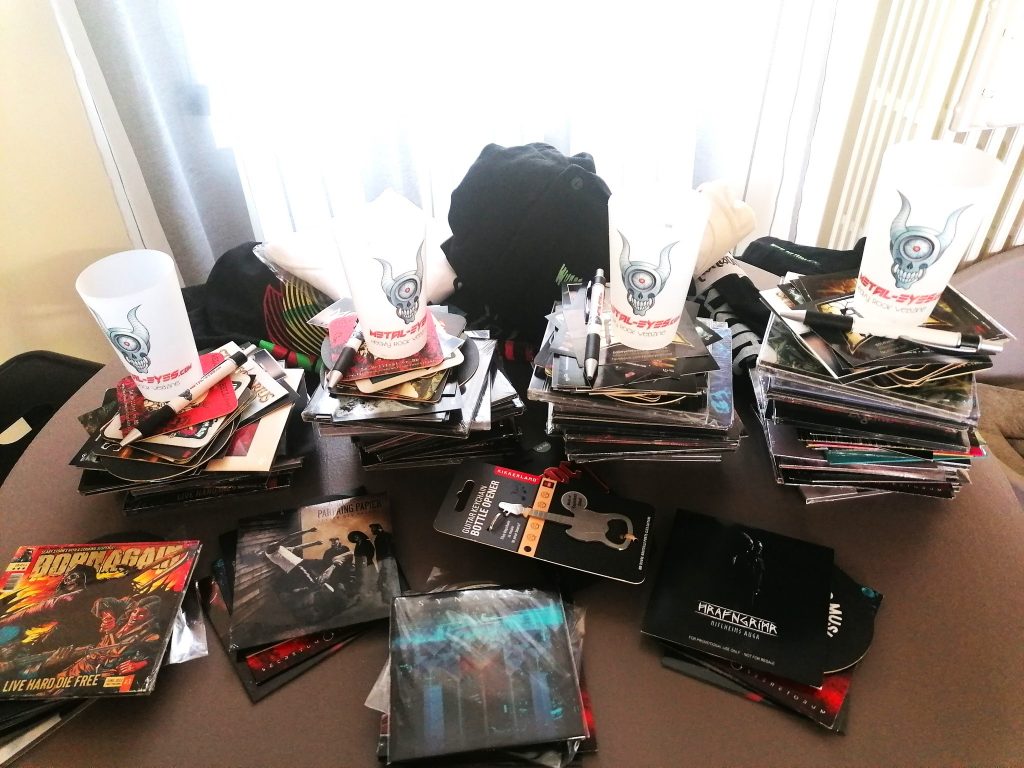 Le premier lot : 39 CD (promo et définitifs) français et étrangers, une clé USB promotionnelle, une photo signée de tous les membres d’un groupe allemand, un mug Metal Eyes (et, dans la limite des stocks disponible un T-shirt surprise et plus encore). Le tout généreusement offert par www.metal-eyes.com, Replica Promotion, Ellie Promotion et Verycords, partenaires du concours.