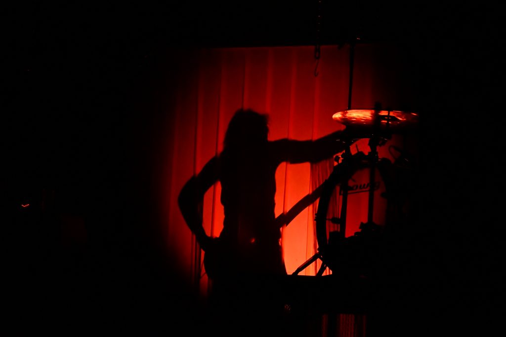 Le changement de plateau se fait rapidement, des panneaux de bandes en plastique rouge prenant place de chaque côté de la scène et des chaînes tombant du plafond. Grandma’s Ashes a aussi envie de marquer les esprits avec une scène travaillée. Et, au regard de la tournée à rallonge, les trois vont certainement voir leur fan base s’agrandir encore!