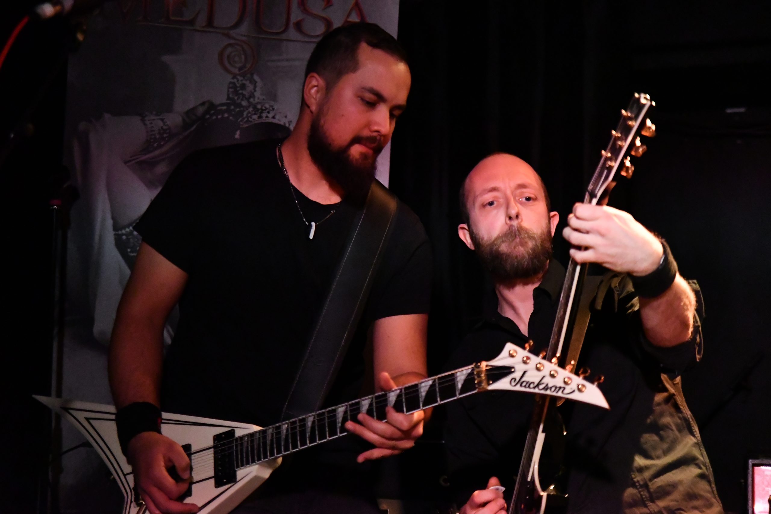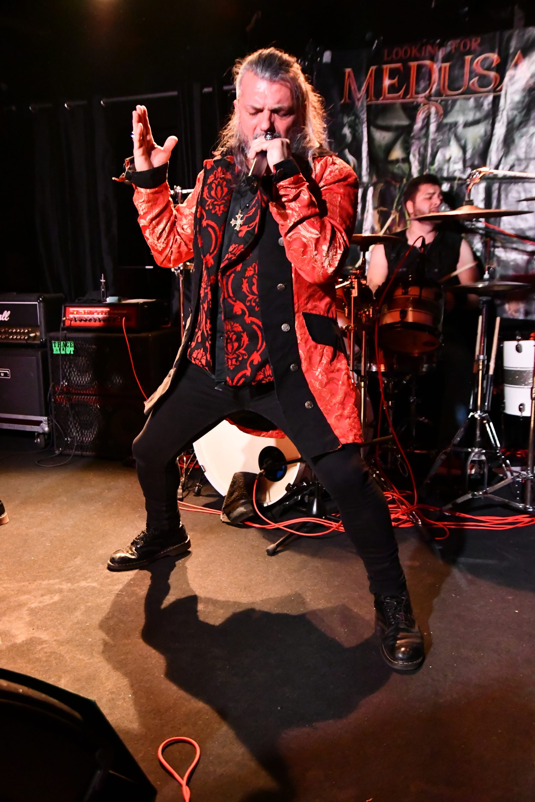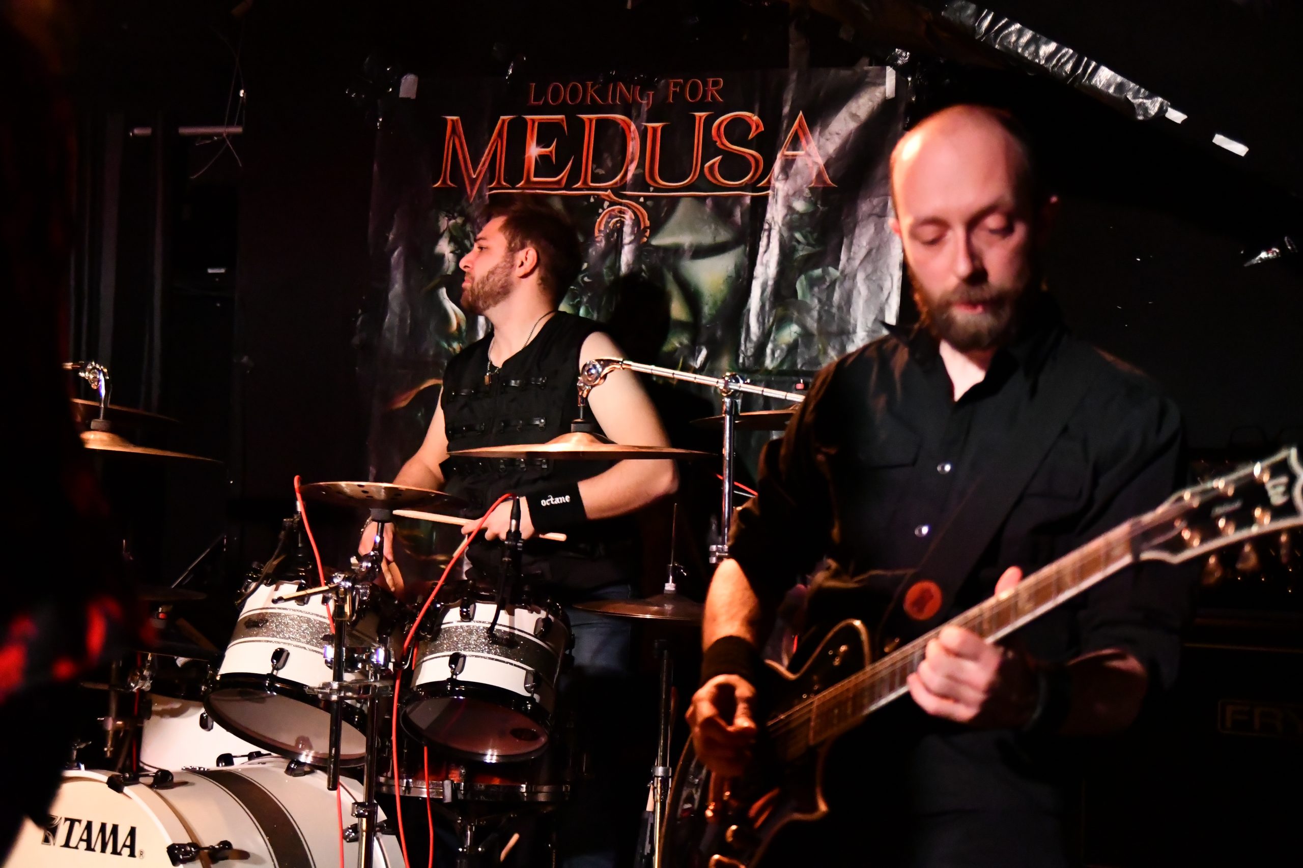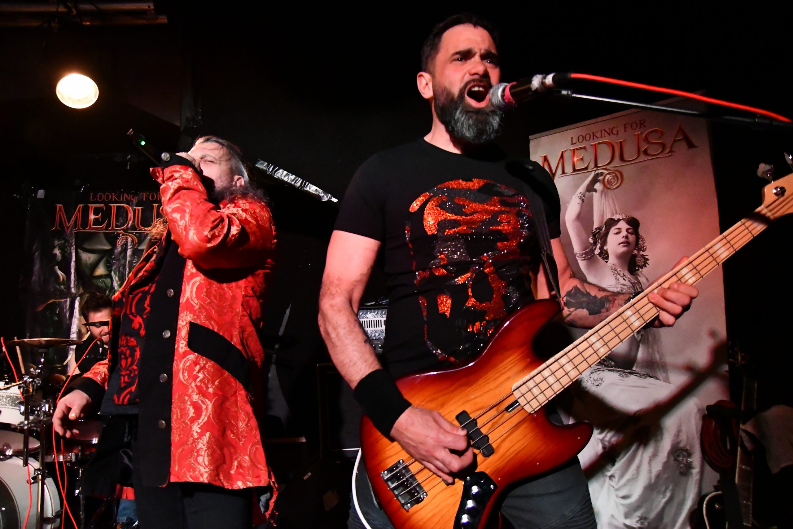 Le temps de changer le plateau et voici la claque de la soirée. Je n’ai jamais entendu parler de Looking For Medusa et je pense être passé à coté de quelque chose. Car le groupe propose un heavy metal racé et plus qu’entrainant, le genre qui donne envie de taper du pied et de bouger. D’ailleurs, le chanteur ne tiens pas en place, arpentant la scène de long en large et en travers.