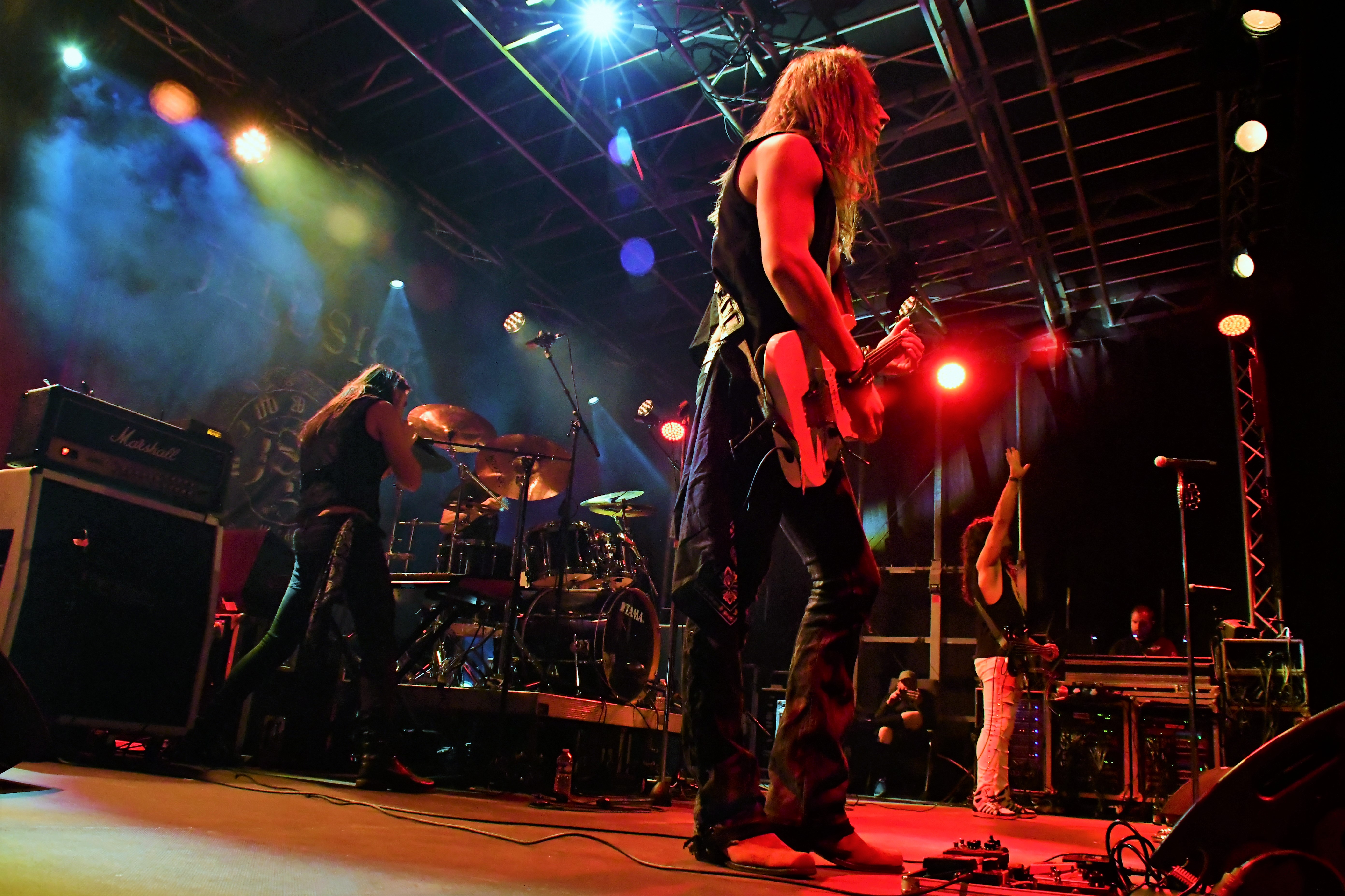 Son guitariste, Ivan Keller, s’il a sa personnalité propre, adopte des poses qui évoquent bien souvent un certain Doug Aldrich. Sa maitrise de la guitare et du shred, ses accélérations/freinages impressionnent autant que son occupation de l’espace scénique et sa complicité avec le bassiste nouvellement arrivé dans le groupe et qui a appris le répertoire en à peine une semaine!