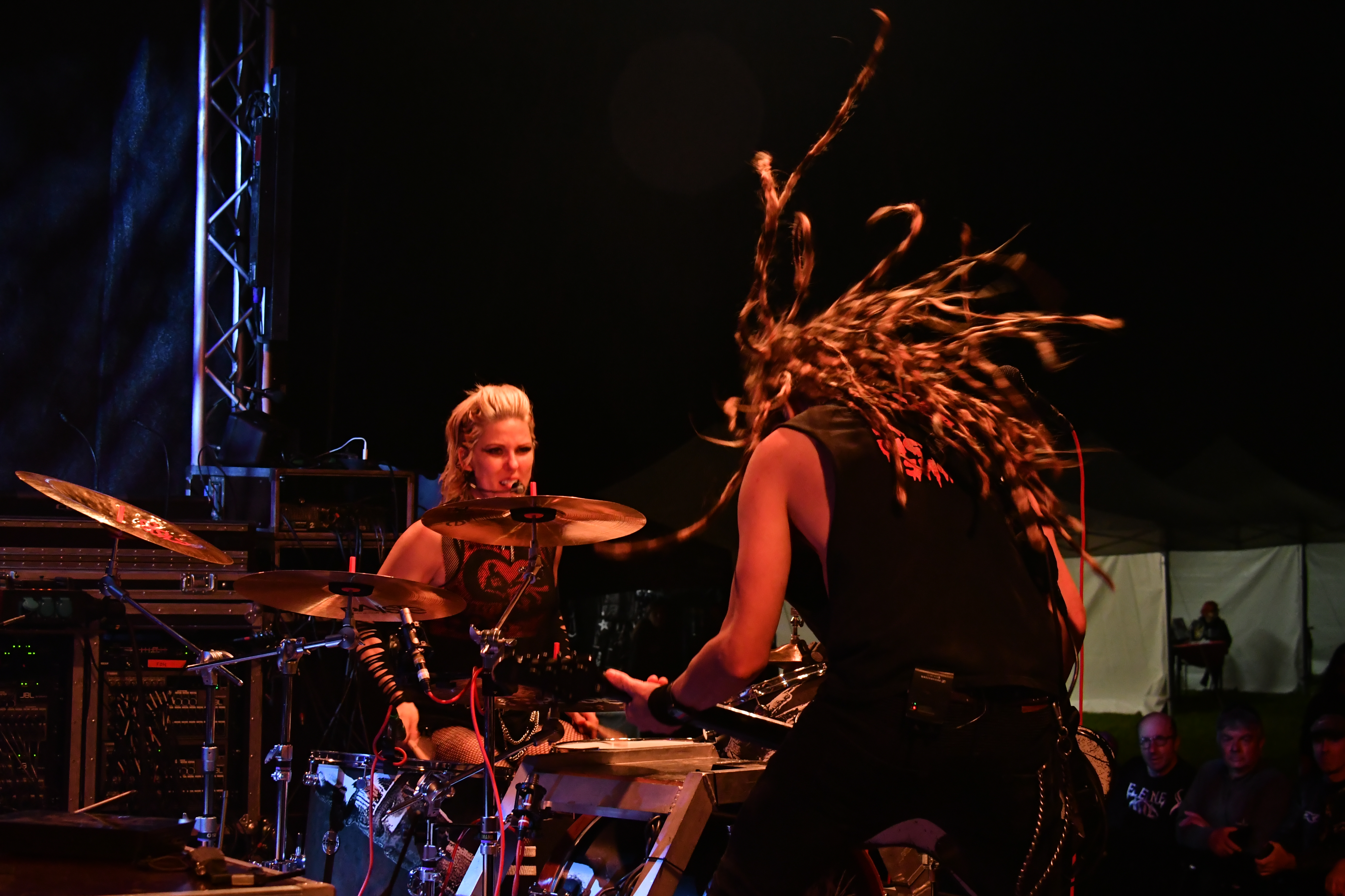 La folie continue de plus belle, Niki s’emparant d’une énorme masse (que pourrait bien jalouser Gloryhammer…) sautant au dessus de son kit pour frapper la terre avec hargne… Le show se termine avec un duo exsangue et ravi qui non seulement vient saluer le public mis l’invite à le rejoindre au stand de merch après le concert. Ce qu’il se passe, le barnum du duo étant quasiment pris d’assaut par les nouveaux fans venus demander autographes et photos autant que se procurer des souvenirs. Un moment exceptionnel – et, encore une fois, un duo à découvrir au travers de cette interview découverte !