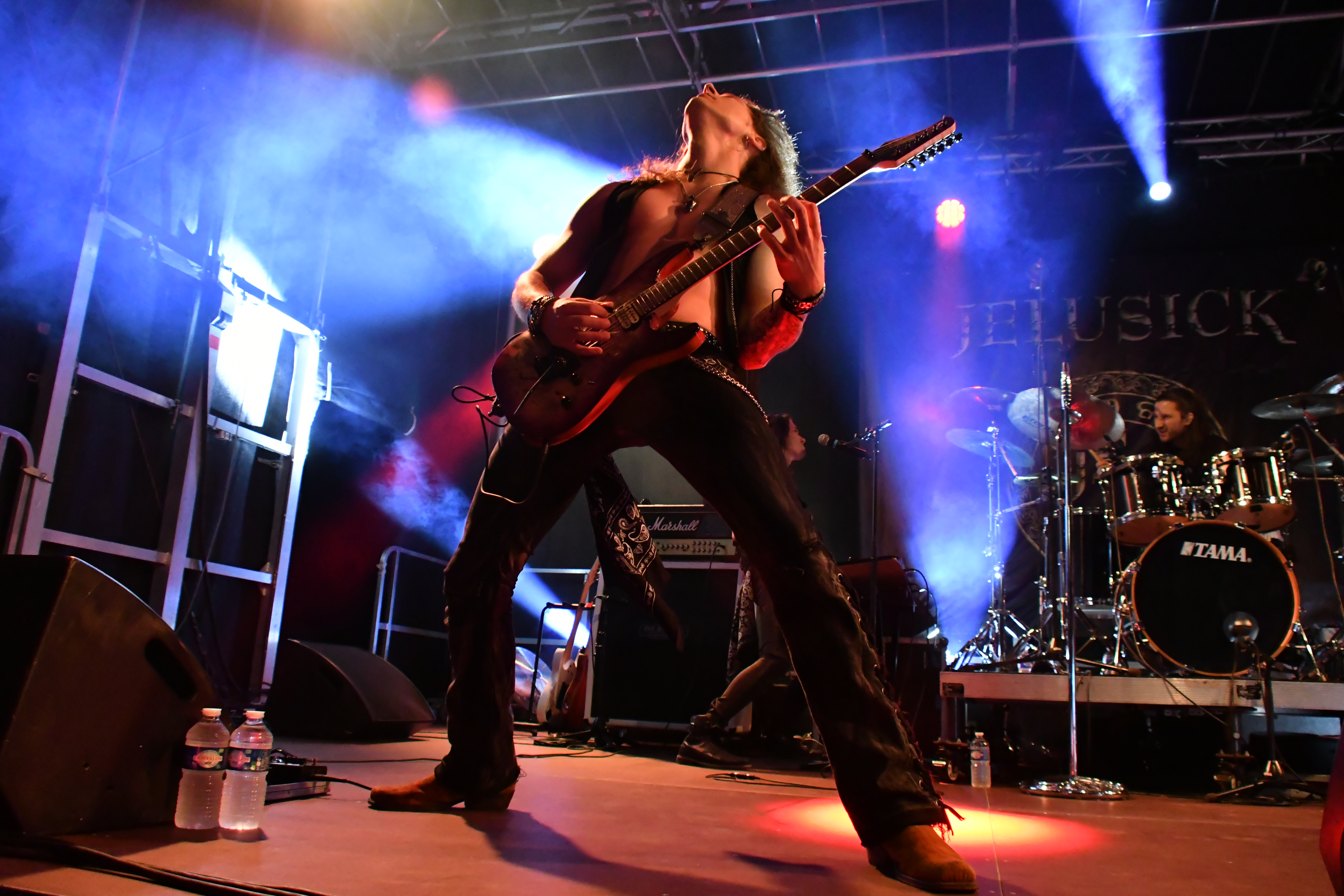 La « sensation » du jour, c’est la venue des Croates de Jelusick. Je n’en ai jamais entendu parlé, mais quelques recherches font ressortir que: 1/le chanteur à remporté l’Eurovision junior il y a des années de ça. Je m’en tape. 2/Il a intégré un certain Whitesnake et a pu soutenir David Coverdale au chant. Et voilà qui m’intéresse plus. Jelusick monte sur scène à la nuit tombée, un énorme backdrop en fond de scène en effet très inspiré de la pochette de l’album éponyme de Whitesnake de 1987. Et dès le premier titre, le message est clair; la tête d’affiche de ce soir vient clore ce festival avec un hard rock léché et efficace.